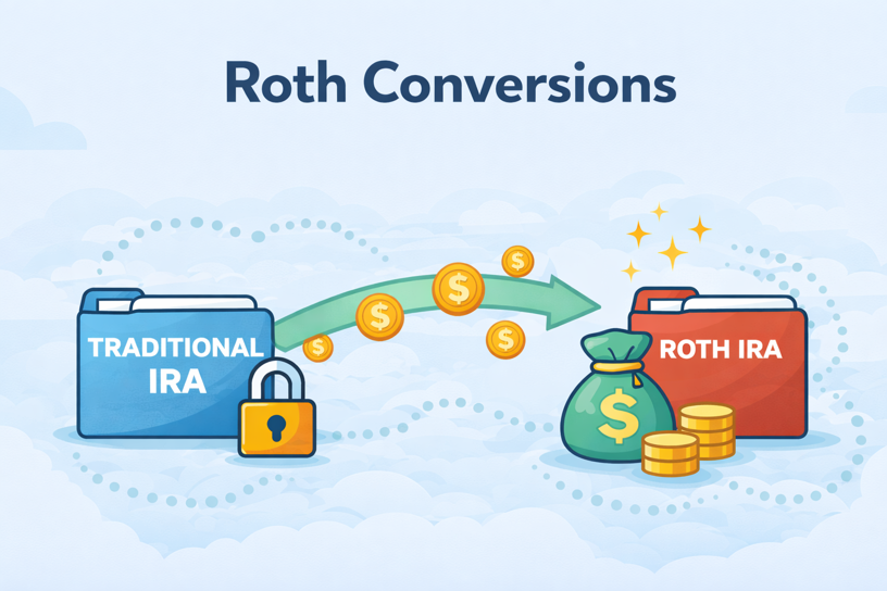 A Roth conversion is the process of moving money from a pre-tax retirement account into a Roth IRA, paying taxes now in exchange for tax-free growth and withdrawals later.